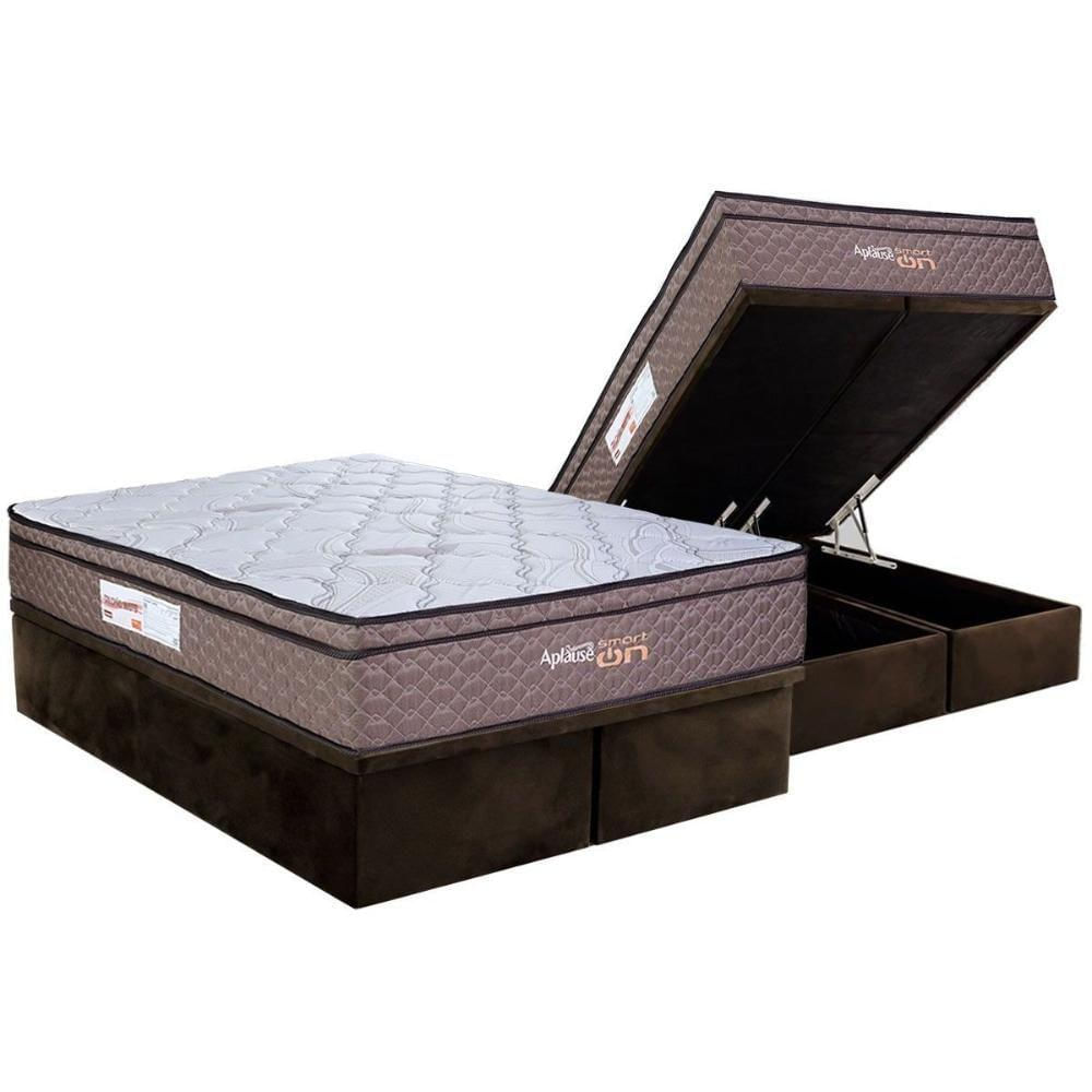 Cama Box Baú Queen: Colchão C/ Vibro Massagem Paropas Vibro Aplause Smart Brown + Base Crc Suede Brown (158x198)