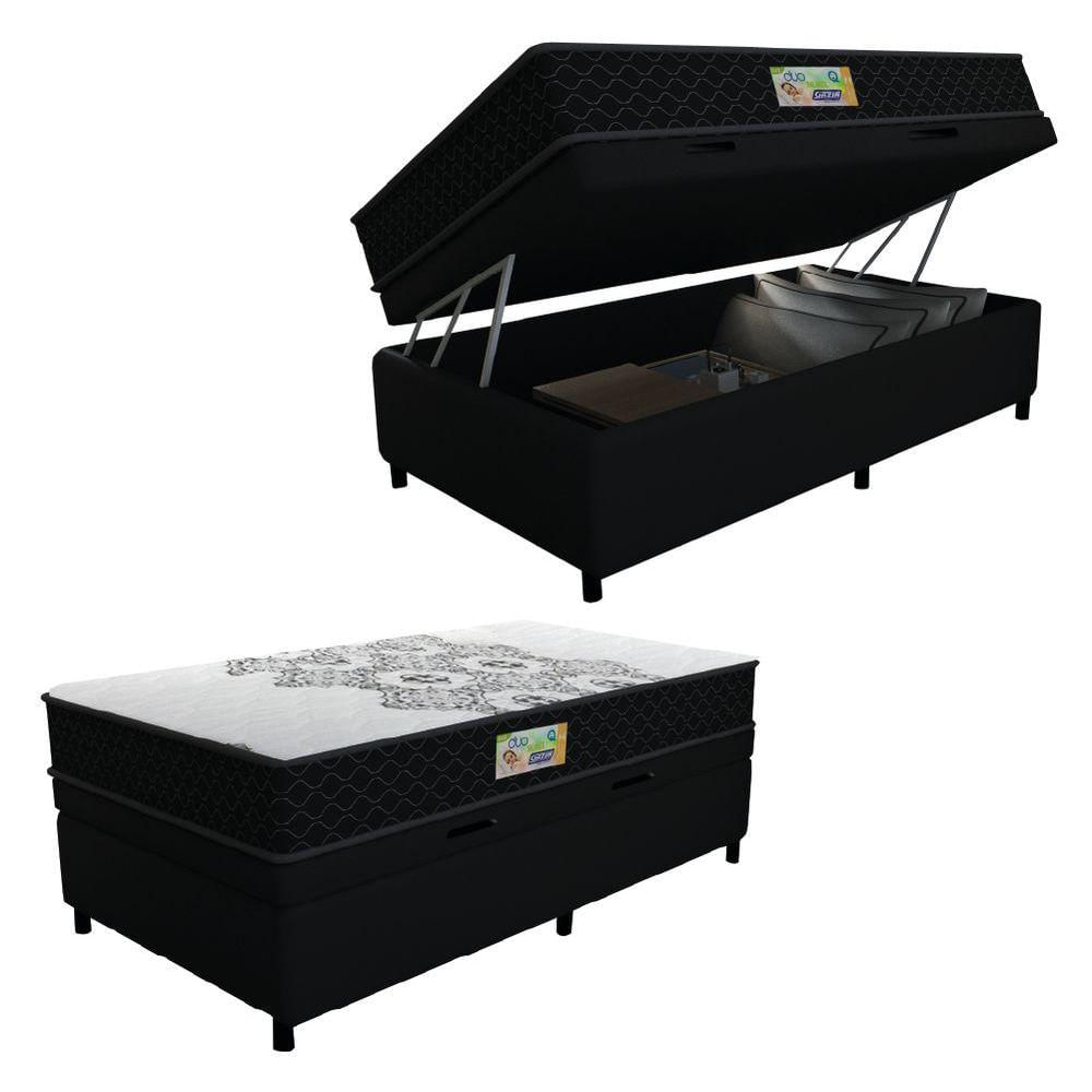 Cama Box Baú Solteiro Gazin Colchão Espuma D33 Duo Balance Suede 88x188x63cm Preto/branco