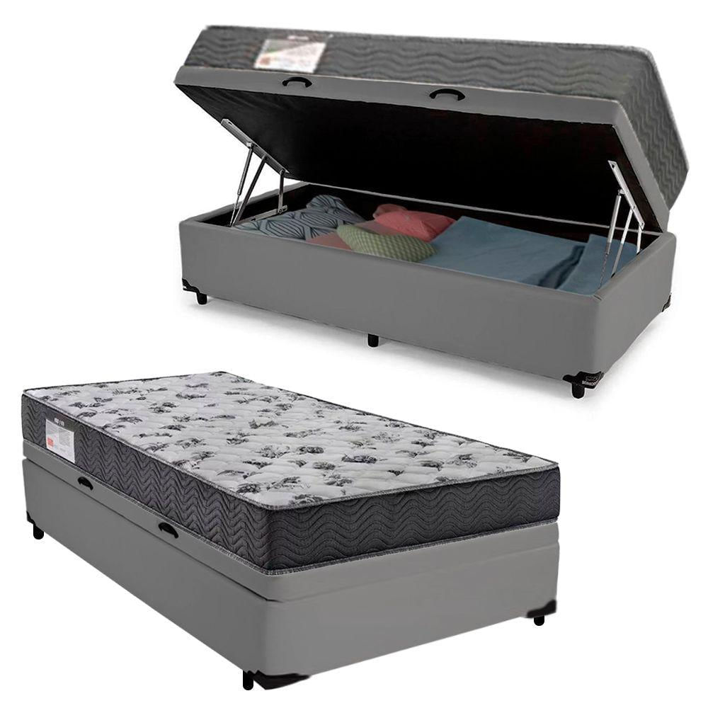 Cama Box Baú Solteiro Sintético + Colchão De Espuma D33 - Sereneprime - 88cm Cinza