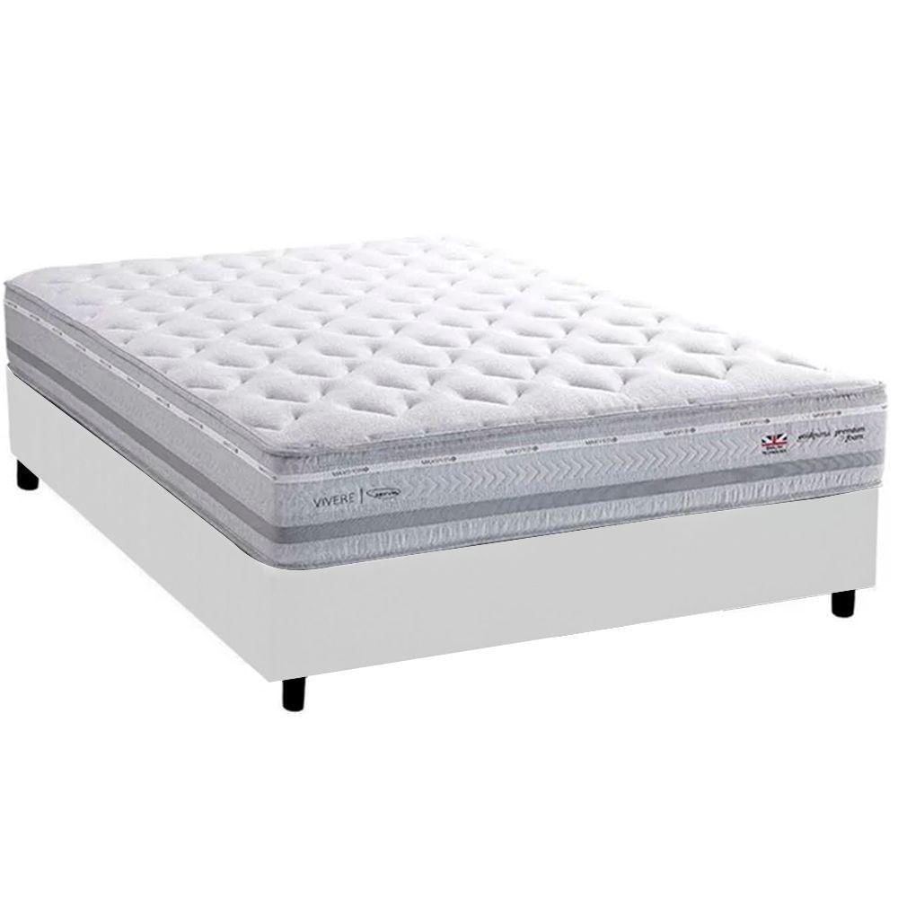 Cama Box Casal + Colchão Herval C1662 Molas Maxspring 138x188x73 Courino Branco