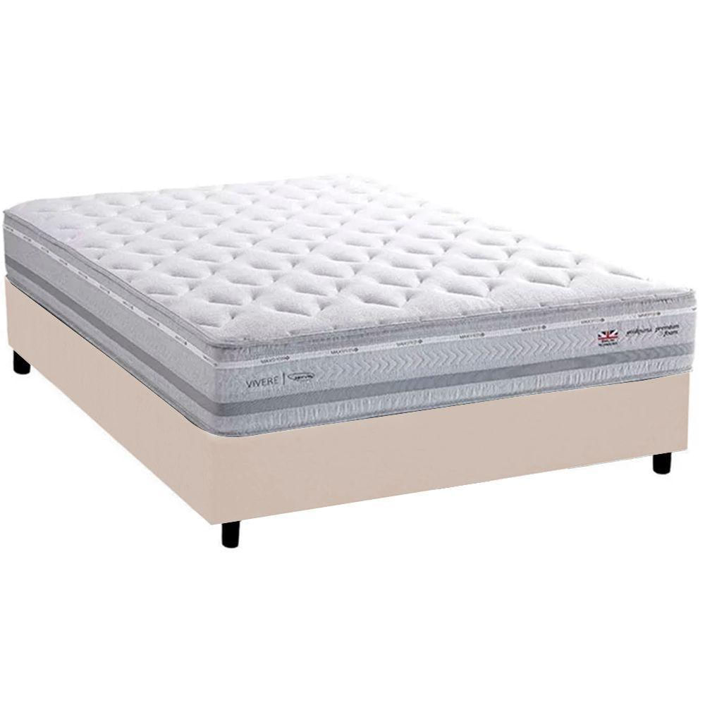 Cama Box Casal + Colchão Herval C1662 Molas Maxspring 138x188x73 Suede Bege