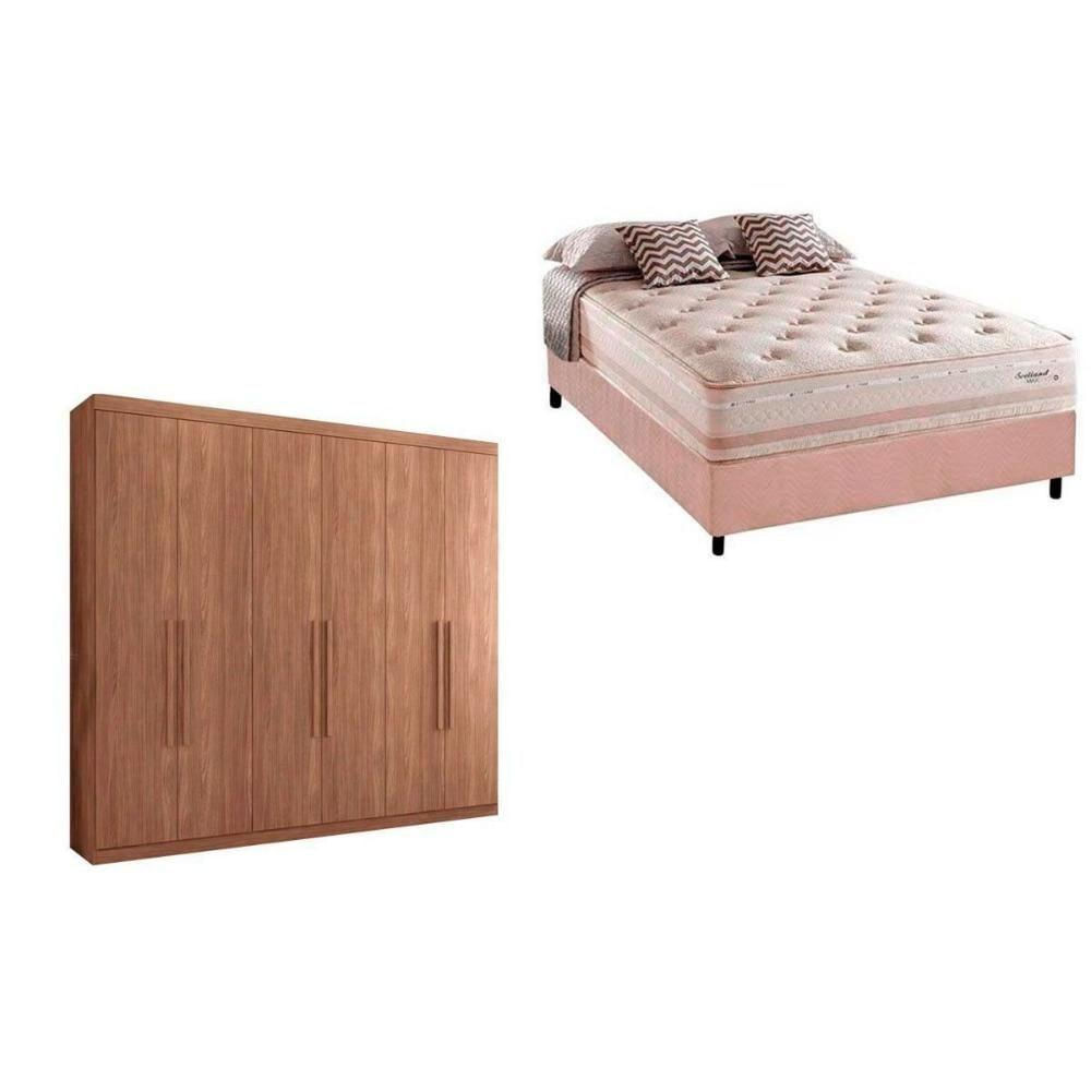 Cama Box Casal + Colchão Scotland Herval + Guarda Roupa Imaginare 6.4 Atacama-jatobá