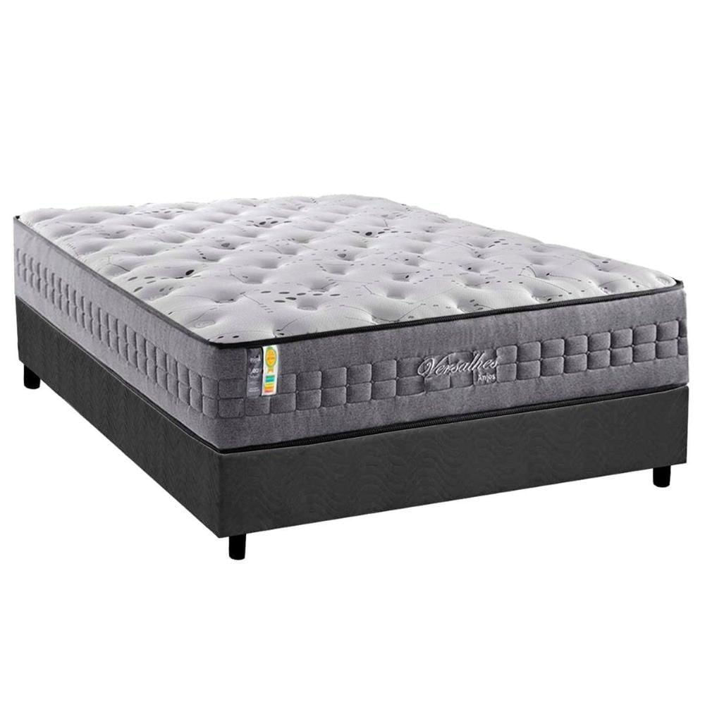 Cama Box Casal: Colchão Molas Ensacadas Versalhes + Base Crc Suede Gray (138x188)