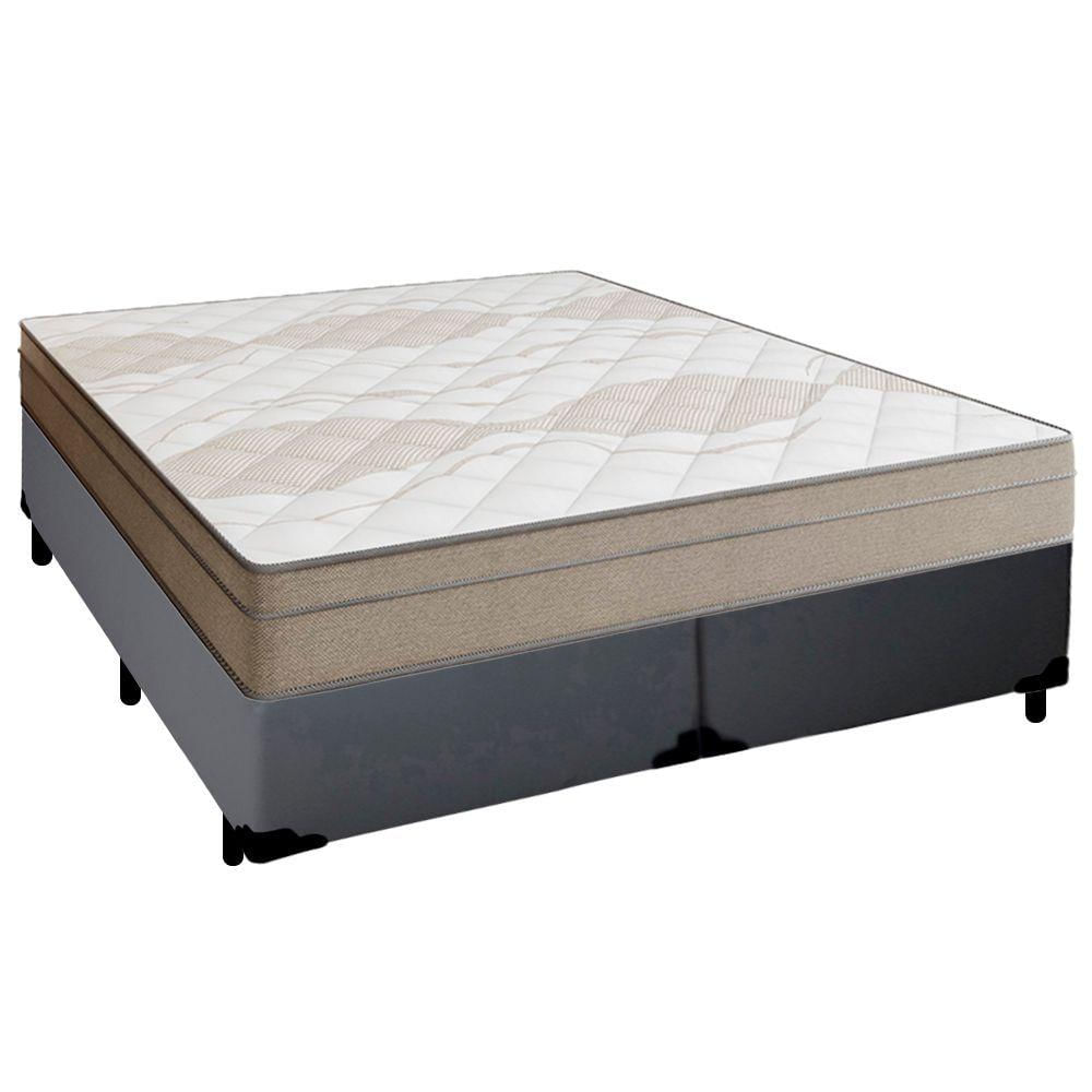 Cama Box Casal Bipartido Sintético + Colchão De Molas Ensacadas Portobel Ipanema - 138x188x65cm Cor:cinza