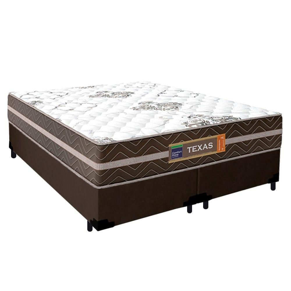 Cama Box Casal Bipartido Suede + Colchão Molas Ensacadas Texas Prime Colchões 138cm - Suporta Até 120kg Por Pessoa