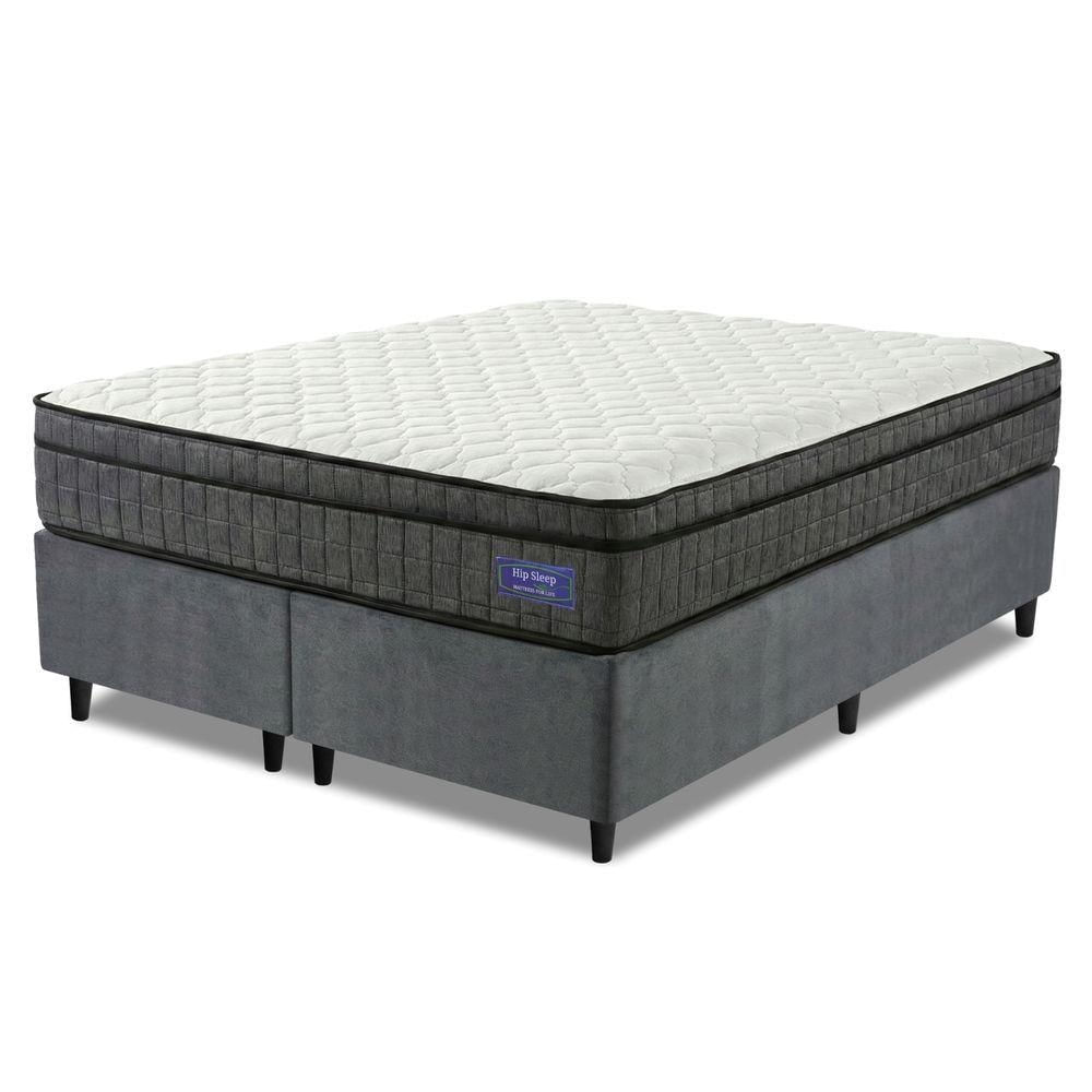 Cama Box Colchão Queen Ortopédico D33 Euro Pillow Ultra 158x198x63cm Cinza