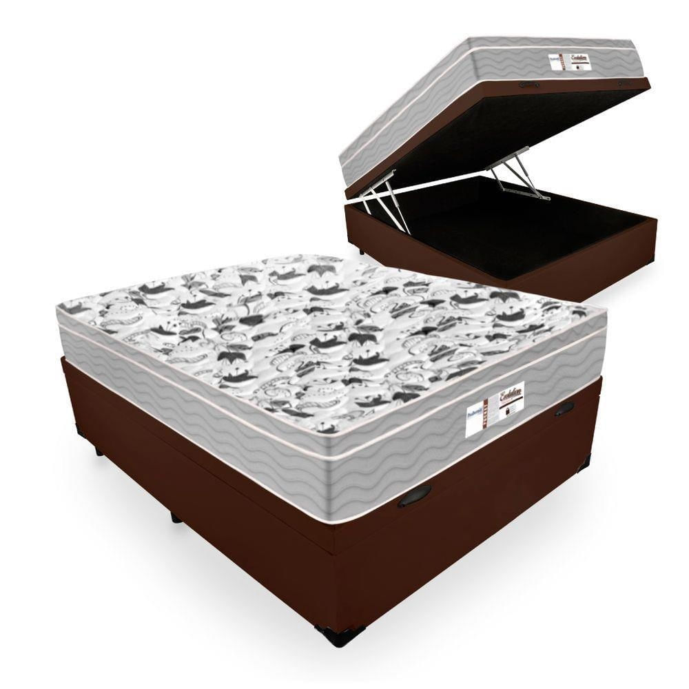 Cama Box Com Baú Casal Tecido Sintético Marrom Com Colchão De Molas Ensacadas - Probel - Evolution 138cm