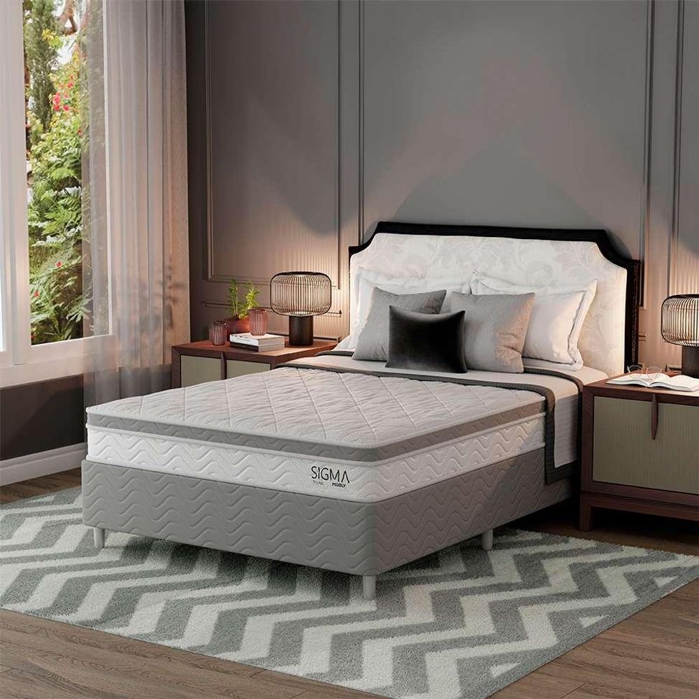 Cama Box com Colchão Casal Sigma Molas Ensacadas (22x138x188) Branco e Cinza