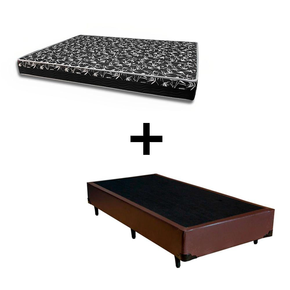 Cama Box Solteiro 88 Tecido Sintético Marrom Com Colchão Belize Bello Box - D33 Preto 57x88x188