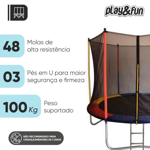 Não perca a oportunidade de proporcionar momentos de alegria e saúde para seus filhos! Compre agora mesmo a Cama Elástica Play & Fun Colorida e prepare-se para as brincadeiras mais incríveis!