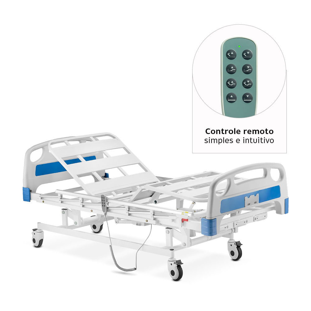 Características -3 pontos de movimento (superior, inferior e altura) que permitem o uso de diversas maneiras, de acordo com a necessidade individual e momentânea de cada paciente; -Possui suporte para prontuário; -Fácil de montar: montagem facilitada e em poucos minutos; -Manivelas rebatíveis; -Grades laterais rebatíveis em alumínio; -Melhor acabamento: revestimento protetivo em polímero nas guias do sistema hidráulico de movimentação -5 posições para o usuário: sentado, semi-fowler, flexão, fowler e cardíaco. -Desmontável; -Fácil transporte; -Manuseio facilitado e maior praticidade; -4 rodas blindadas com freios de dupla ação; -Giro de 360° sobre o próprio eixo; -Estrados com abertura que facilitam a troca de umidade; -Pintura epóxi de alta durabilidade e resistente à corrosão; -Três movimentos articulados com regulagem de altura; -Eixos com capa protetora que preservam a lubrificação; -Design mais moderno da categoria; -Proteção anti-impacto em todas as quinas; -Cabeceira e peseira com sistema de remoção rápido, permitindo acessar o paciente com maior rapidez e segurança.