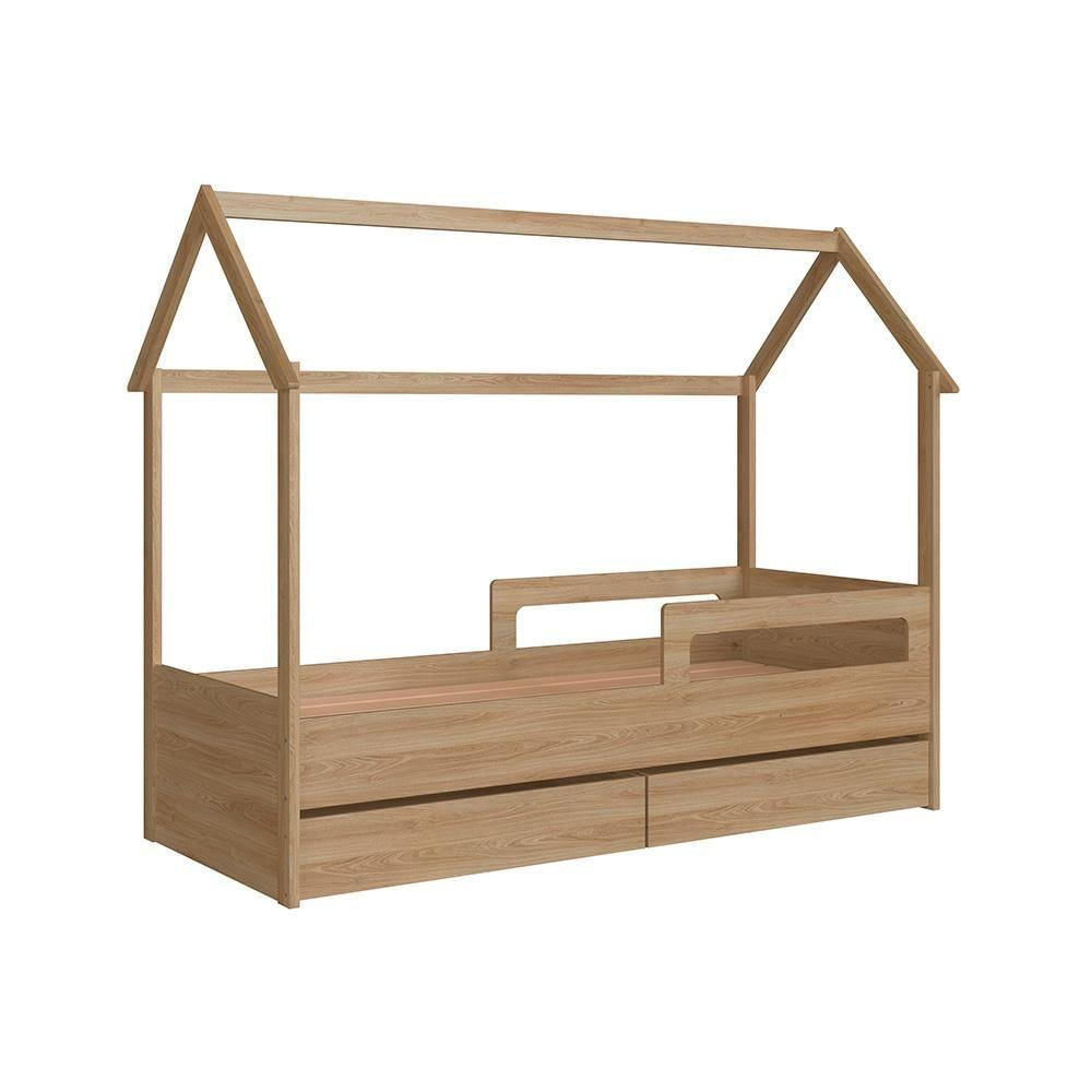 Cama Infantil Com 2 Gavetas Solteiro Casinha Aveiro Oak Carrossel Shop Jm