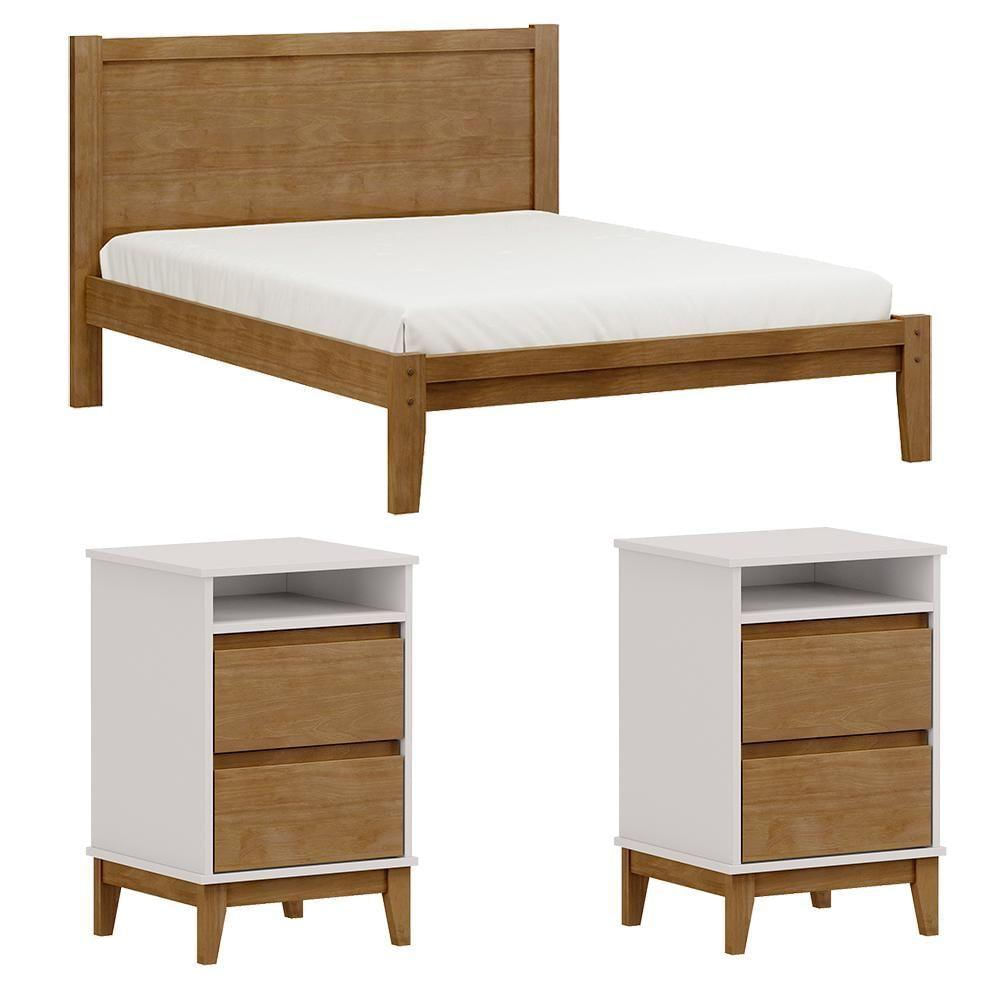 Modelo: Cama Queen Madeira Maciça 02 Mesas de Cabeceira Milani Store