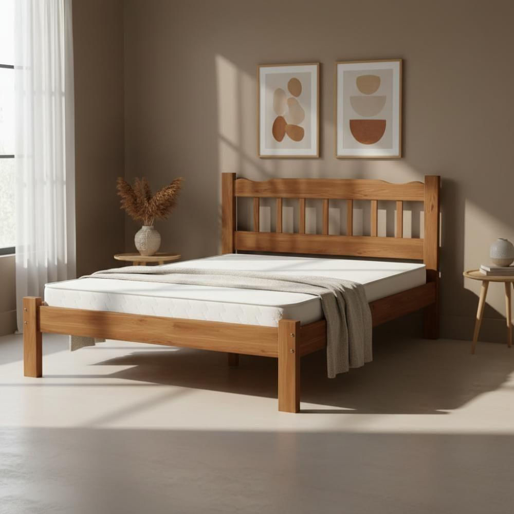 Transforme seu quarto em um verdadeiro refúgio de conforto, elegância e resistência com a Cama de Casal Queen em Madeira Maciça Reforçada com Colchão. Ideal para quartos amplos e suítes master, esse conjunto foi desenvolvido para quem busca qualidade, durabilidade e praticidade em uma única compra.A cama possui estrutura em madeira maciça reforçada, garantindo alta estabilidade e excelente desempenho no uso diário, com capacidade para suportar até 250 kg de peso distribuído. Projetada com dupla furação, é compatível com colchão Queen Size padrão (158 x 198 cm), assegurando encaixe perfeito, melhor distribuição de peso e maior conforto durante o sono.O conjunto acompanha 1 colchão Queen, proporcionando praticidade imediata e uma experiência completa desde o primeiro uso. O acabamento na cor Nogueira (castanho) valoriza os veios naturais da madeira, trazendo um visual sofisticado e acolhedor, que combina com estilos clássicos, rústicos ou modernos.Dimensões do produto montado:Largura: 164 cmProfundidade: 209 cmAltura: 100 cmEssas medidas oferecem amplo espaço para um descanso confortável, além de altura ideal para facilitar o acesso, a organização do ambiente e a limpeza abaixo da cama. A estrutura reforçada mantém firmeza e estabilidade mesmo com movimentos mais intensos.Principais características:Estrutura robusta em madeira maciça reforçadaCompatível com colchão Queen Size 158 x 198 cmAcompanha 1 colchão QueenSuporta até 250 kgDesign elegante, resistente e atemporalFácil manutenção e longa vida útilA Cama Queen em Madeira Maciça com Colchão é a escolha ideal para quem deseja conforto, segurança e sofisticação em um único produto, elevando o padrão do quarto com excelente custo-benefício. Ideal para quem busca praticidade sem abrir mão da qualidade. Inclui manual de montagem: Sim | Tamanho da cama: Queen | Comprimento: 209 cm | Quantidade de caixas de embalagem: 3 | Altura: 100 cm | Requer montagem: Sim | Largura: 164 cm | Marca: Repleta | Tipo de cama: Casal queen | Tamanho: Queen | Fabricante: Repleta | Número do modelo: N/A | Principais Características do Produto 1: Estrutura robusta em madeira maciça reforçada | Exige montagem: Sim | Principais Características do Produto 2: Acompanha 1 colchão Queen | Baterias são necessárias?: Não | Dimensões do item C x L x A: Largura: 164 cm; Profundidade: 209 cm; Altura: 100 cm | Certificação de teste externa: Sim | Número de caixas: 3 | Principais Características do Produto 0: Largura: 164 cm; Profundidade: 209 cm; Altura: 100 cm | Número da peça: N/A | Peso do item: 213,1 | Cor: Nogueira | Palavras-chave de Pesquisa: Cama | Componentes incluídos: Ripa | Quantidade de itens: 2 | Regulamentações de produtos perigosos: Sim | TIPO: Cama Queen | 0: 0