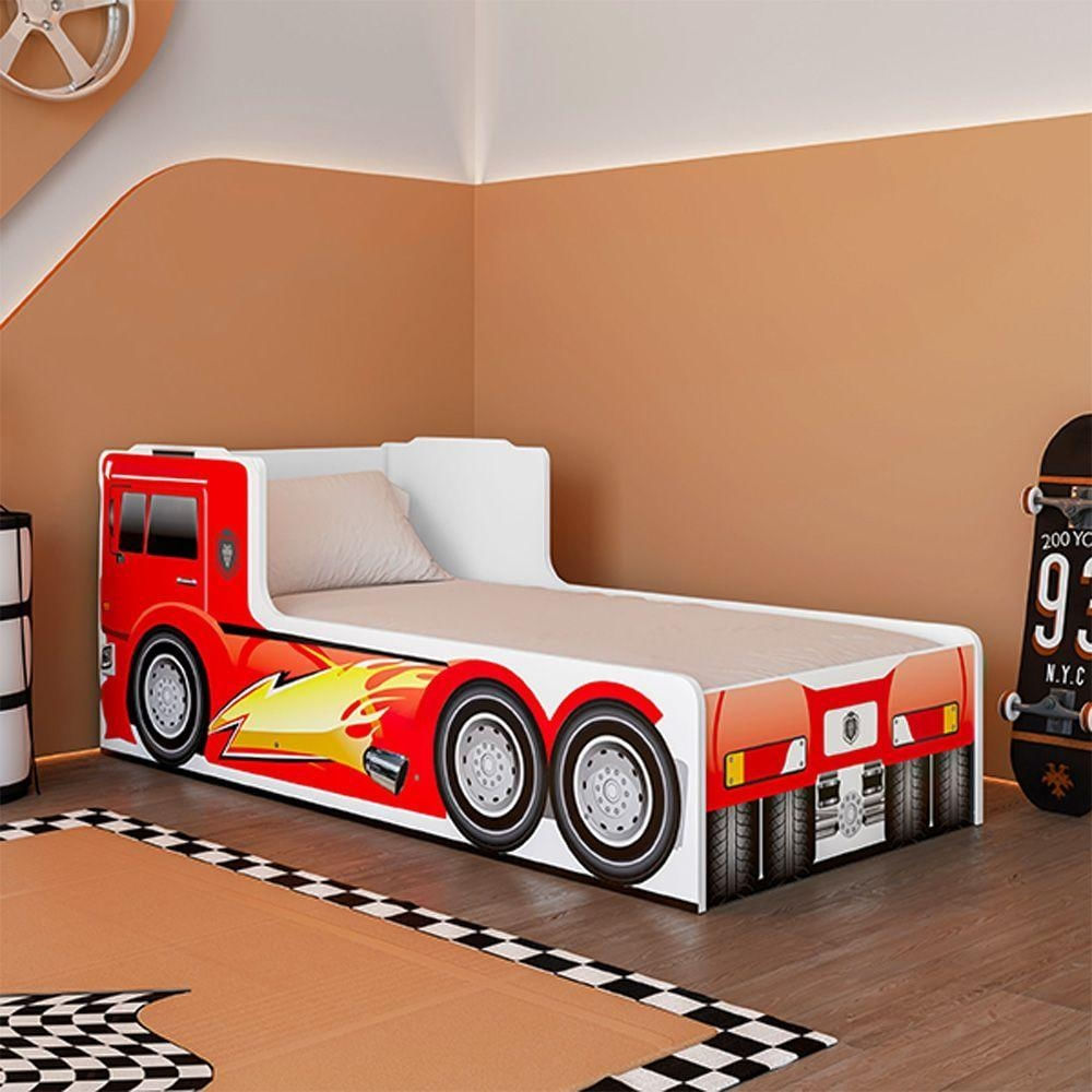 Caminha Montessoriana Caminhão Infantil Juvenil Para Quarto Menino Com Cabeceira Peseira - Vermelho
