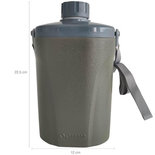 Cantil fabricado com plástico resistente, e isolamento térmico em poliuretano (PU), o que vai manter seus líquidos gelados por mais tempo. De acabamento texturizado, capacidade de 1 litro, este cantil tem bico com tampa de rosca, com borracha de vedação e trava de retenção, evitando a perda da tampa. Alça tira colo com regulagem de tamanho e que pode ser removida. De cores variadas escolha o seu preferido e curta seus momentos de aventura e lazer.