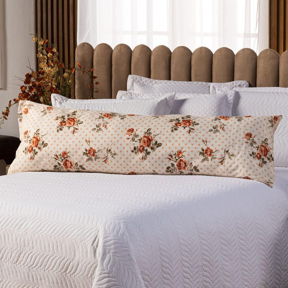 Capa Fronha De Xuxão Travesseiro De Corpo Estampada Avulsa 1,45m X 45cm - Percal 140 Fios 100% Algodão Cor Floral Salmão
