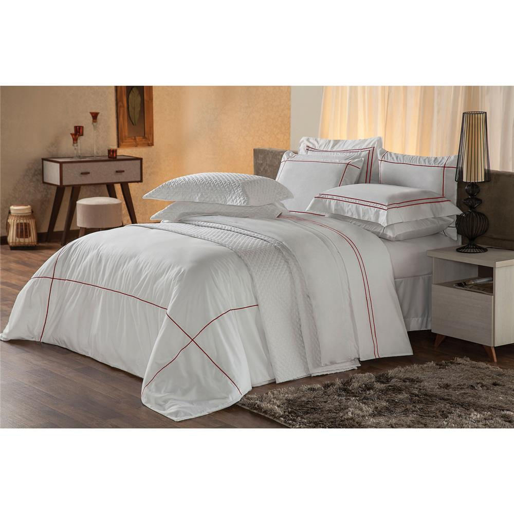 Capa para Edredom Solteiro + 1 Fronha Plumasul Duvet Premium 230 Fios - 160 x 220 cm Branco e Vermelho