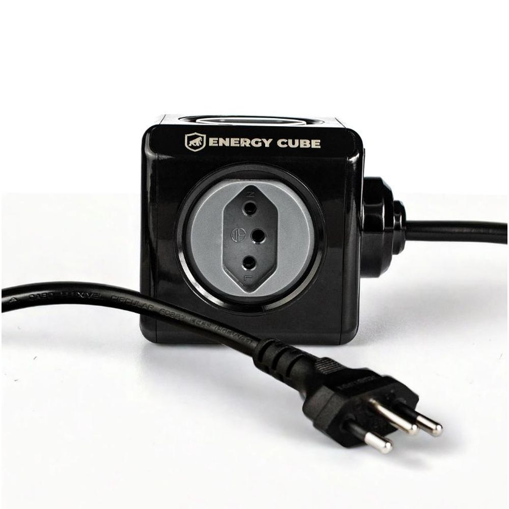 Carregador Adaptador Bivolt Energy Cube - Preto - Entrada USB-A + Tipo C + 4 Tomadas com Cabo 1,5M