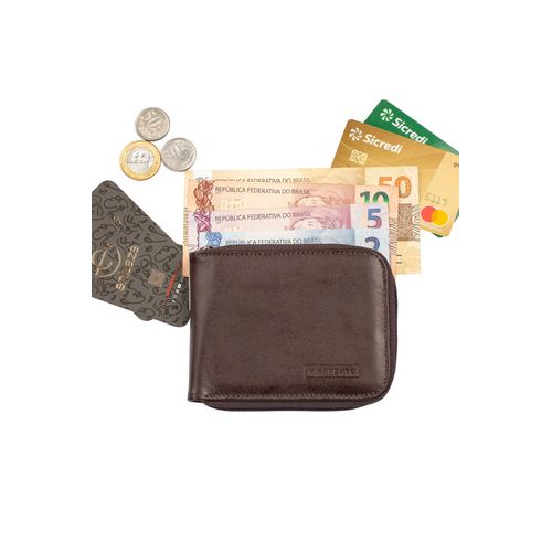 Carteira masculina confeccionada em couro legítimo, o que garante, além da qualidade e durabilidade do próprio material, um estilo sofisticado e clássico. Este modelo possui um zíper de fechamento, para que todos os seus documentos e dinheiro estejam seguros. Internamente, esta carteira possui tudo o que você precisa: espaço para cartões, documentos, moedas, cheque e dinheiro. Se você gosta do clássico e prefere modelos de carteiras com zíperes, este modelo é a escolha perfeita para você. Altura: 9,5 cm Largura: 12 cm Profundidade: 2 cm Material: Couro legítimo.
