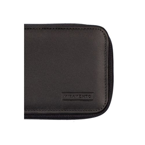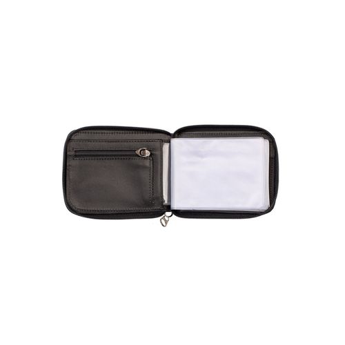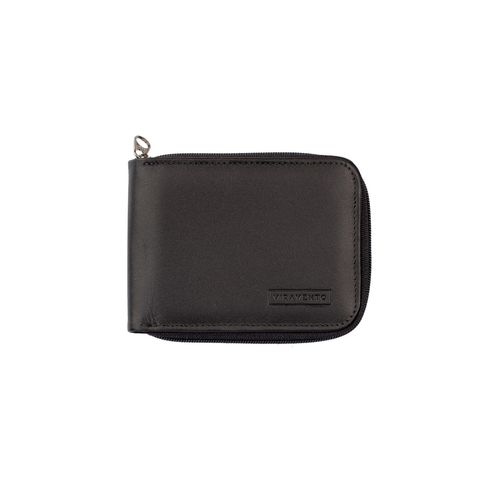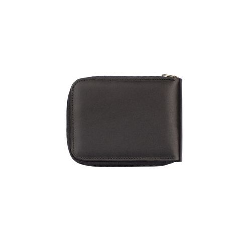 Carteira masculina de couro italiano com zíper Ryan 9,5x12cm Preta