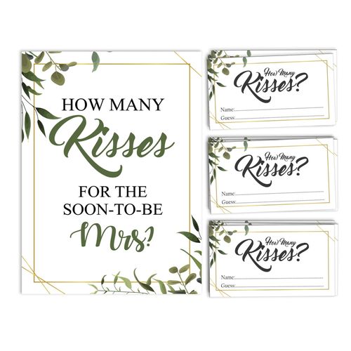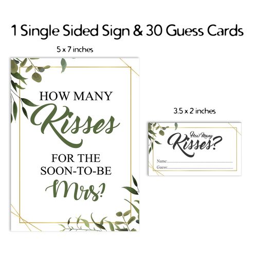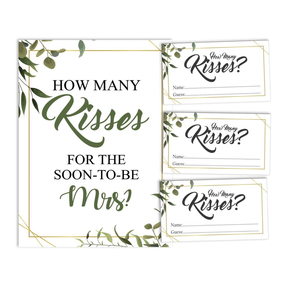 Cartões de Jogo Quadrados em Branco para Chá de Noiva e Despedida de Solteira, 50 Peças, Tema Folhagens - Inkdotpot 8,89 Cm × 5,08 Cm / Branco - Quantos Beijos?