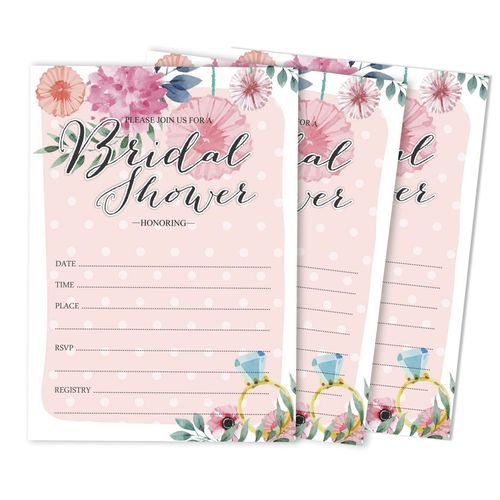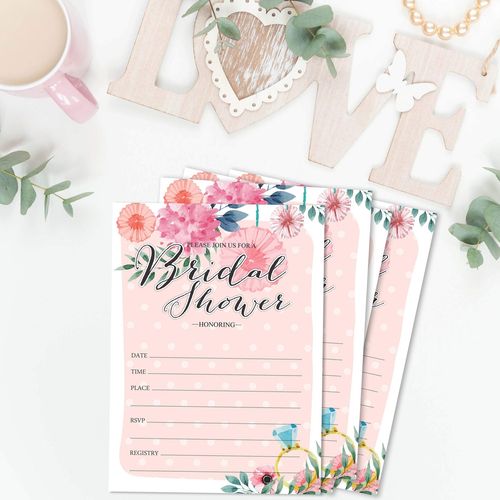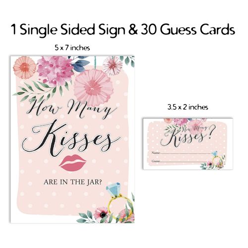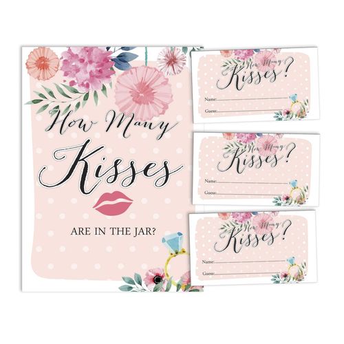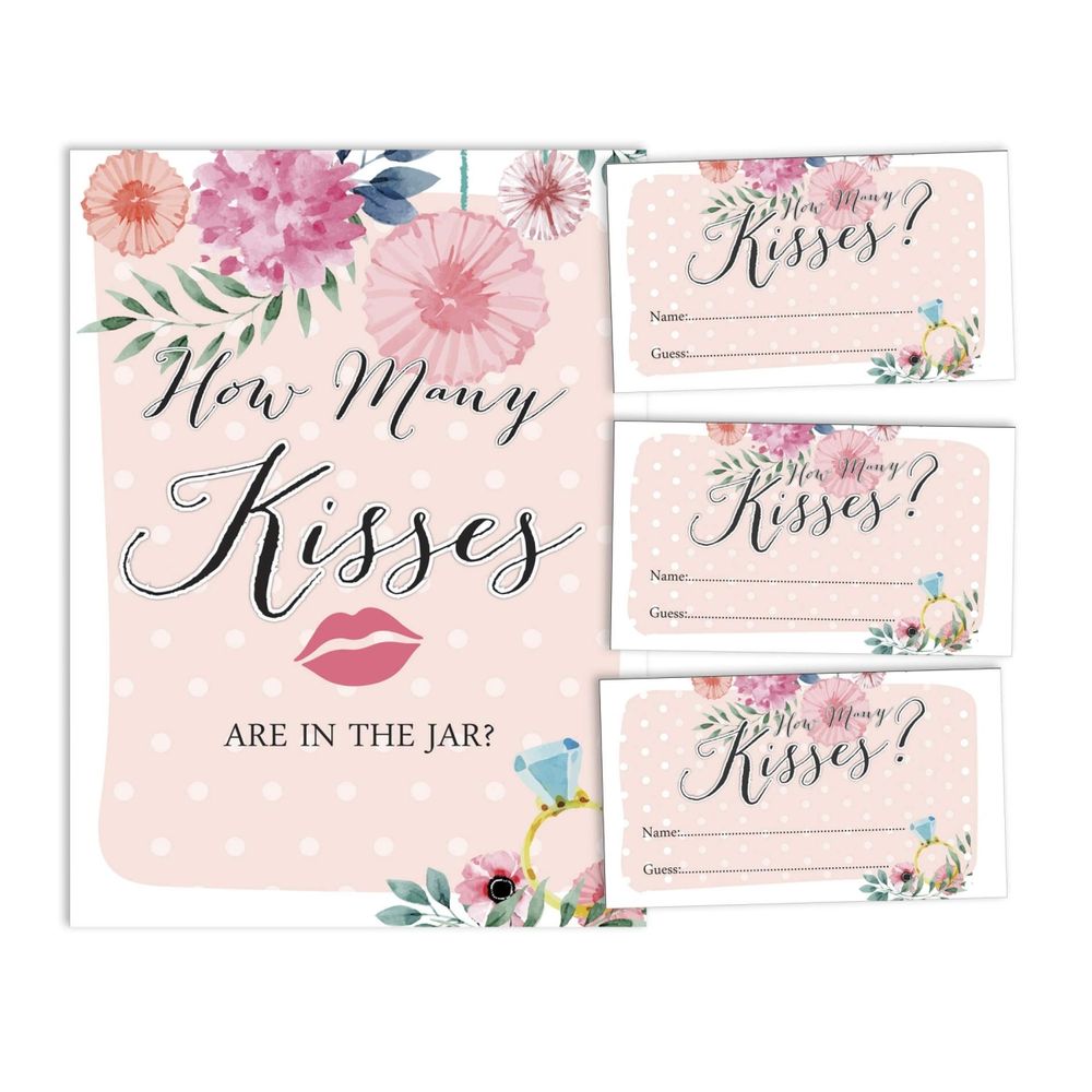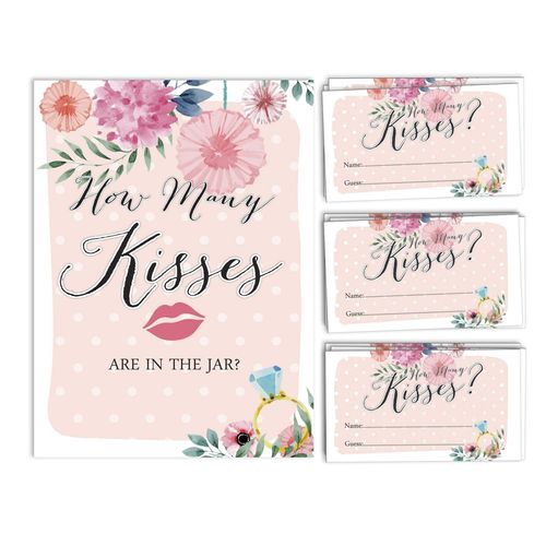 Cartões Florais Quadrados em Branco para Preencher Ideias de Presente para Chá de Noiva e Despedida de Solteira, Pacote com 50 - Inkdotpot 8,89 Cm × 5,08 Cm / Branco - Quantos Beijos?