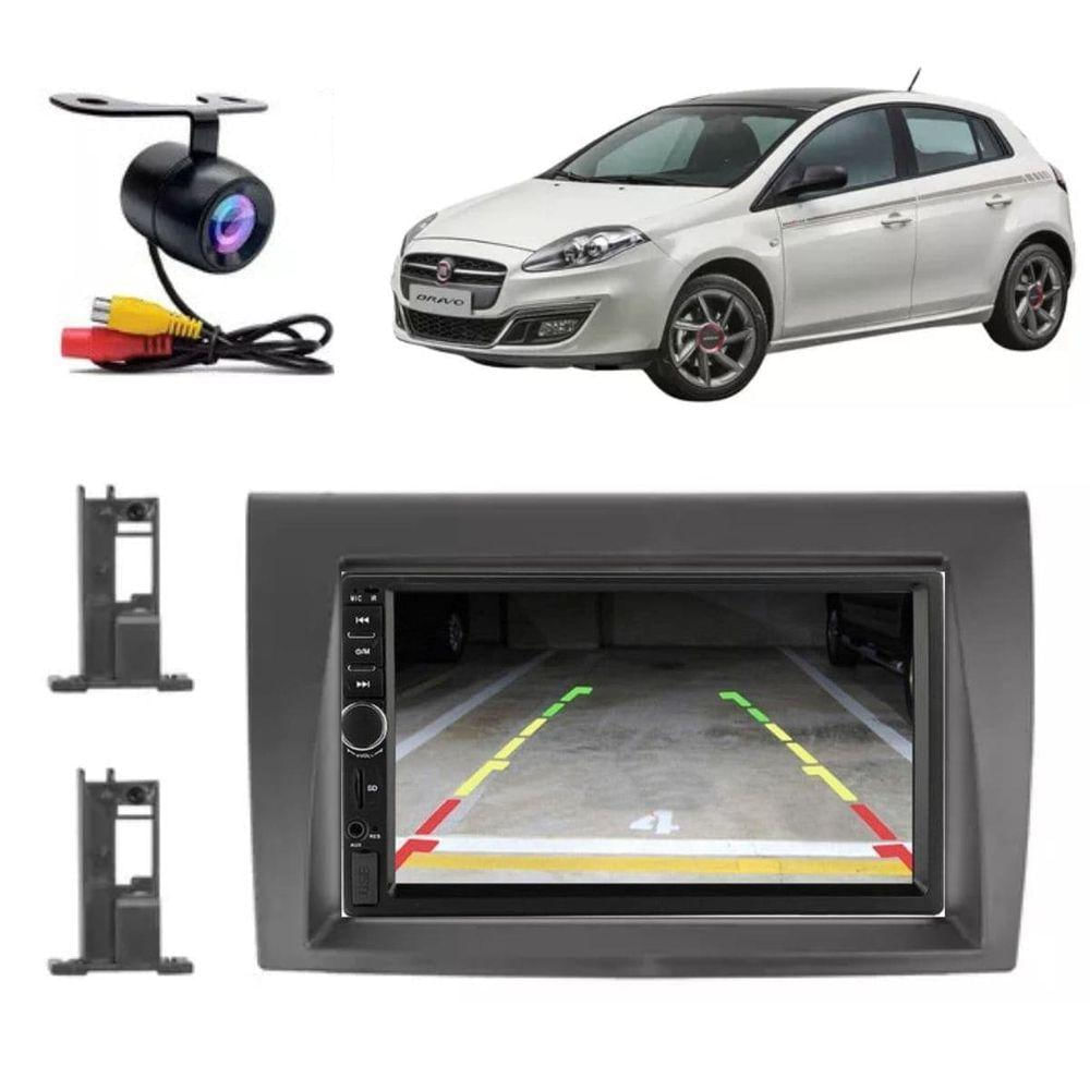 Central Multimídia 2 Din Mp5 Fiat Bravo Câmera Moldura Pt Fosco