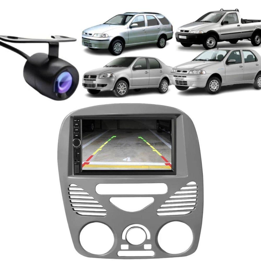 Central Multimídia 2 Din Mp5 Fiat Strada G2 Câmera Moldura Cinza