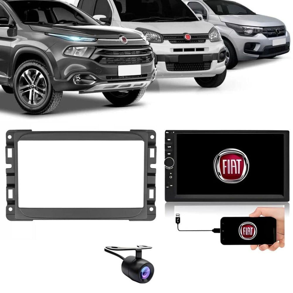 Central Multimídia 2 Din Mp5 Fiat Uno Câmera Moldura Pt Fosco
