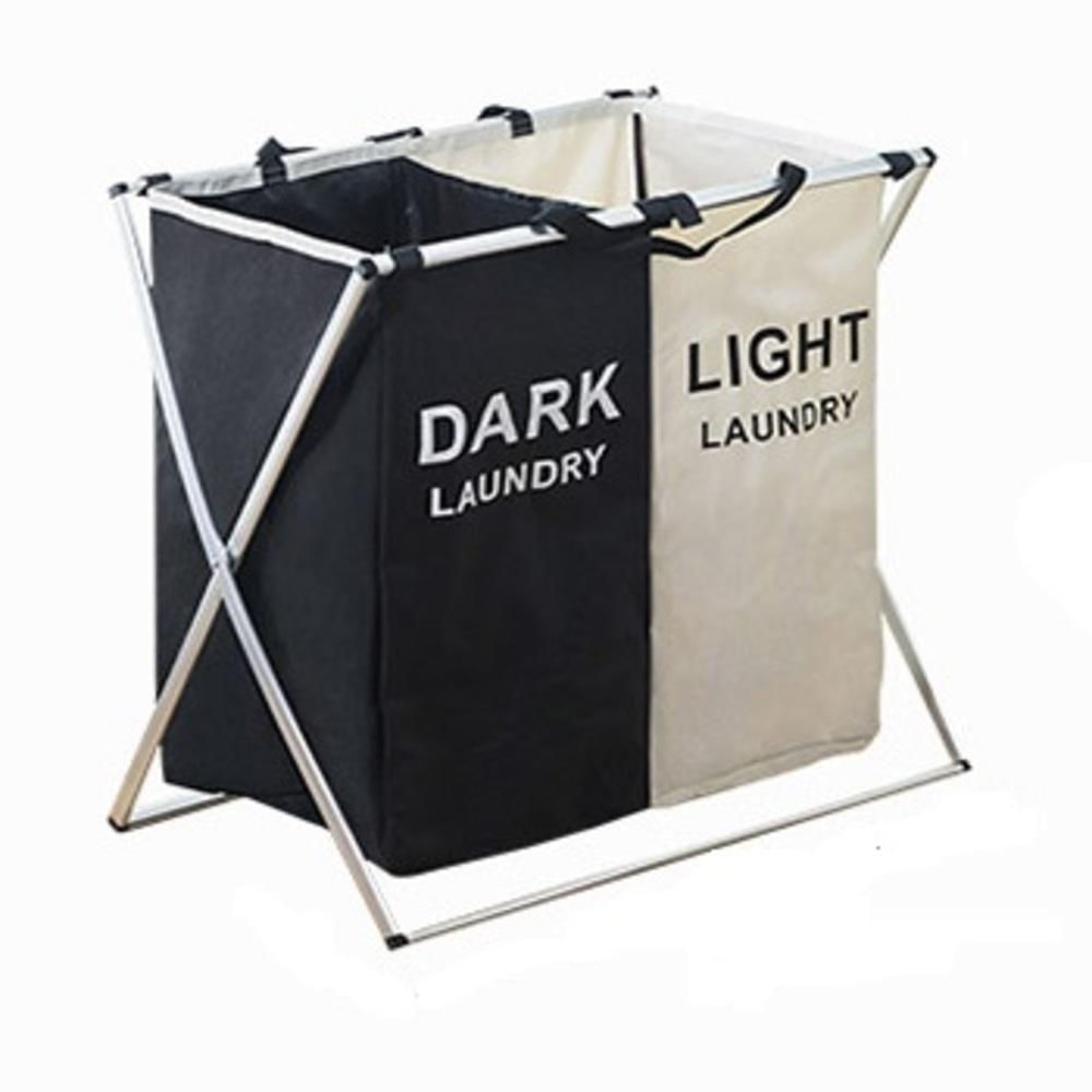 Cesto De Roupa Suja Duplo Cromado Organizador Roupeiro Para Lavanderia Quarto E Banheiro