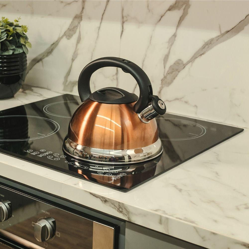 Chaleira Em Inox Com Apito E Fundo Duplo à Indução Dourada