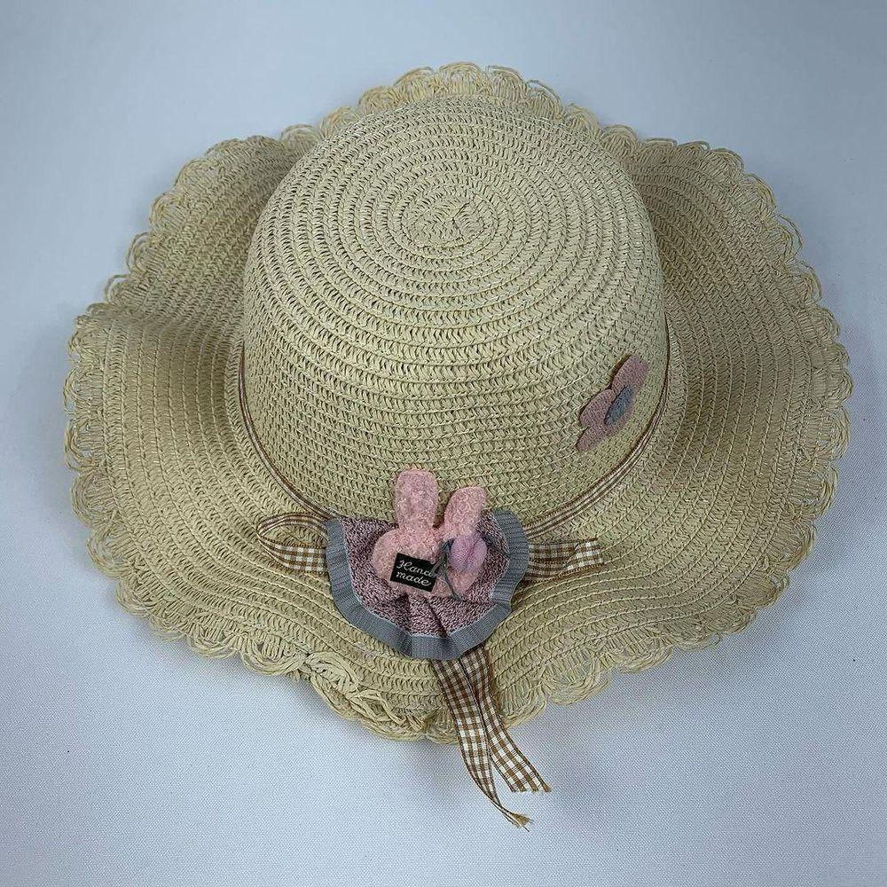 Chapéu De Palha Sintética Infantil Moda Praia Com Coelhinho Com Elástico caramelo