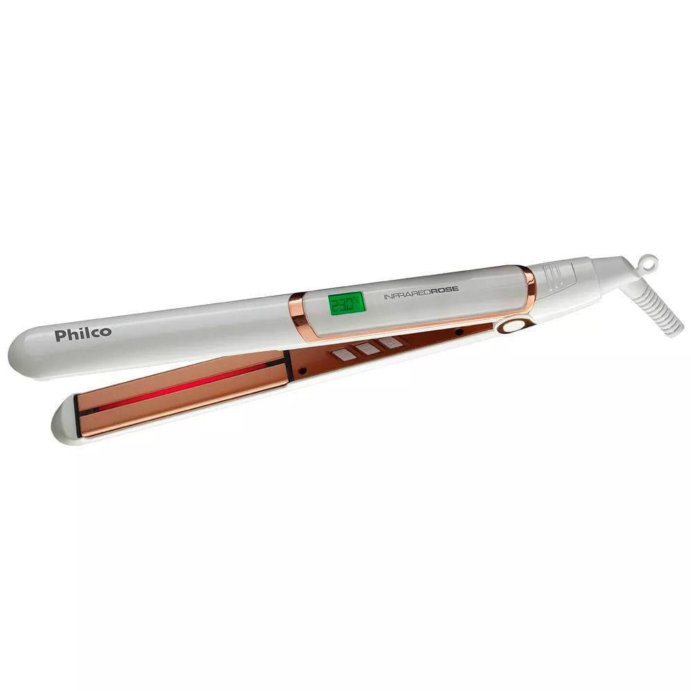 Chapinha-Prancha Infrared Cerâmica 230 graus C com Luz Infra Vermelho e Cabo Giratório Philco Branco / Bivolt