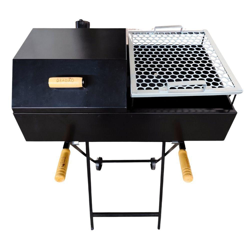 Churrasqueira A Carvão Meia Bafo Premium Com Suporte Móvel Preto