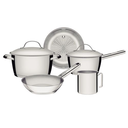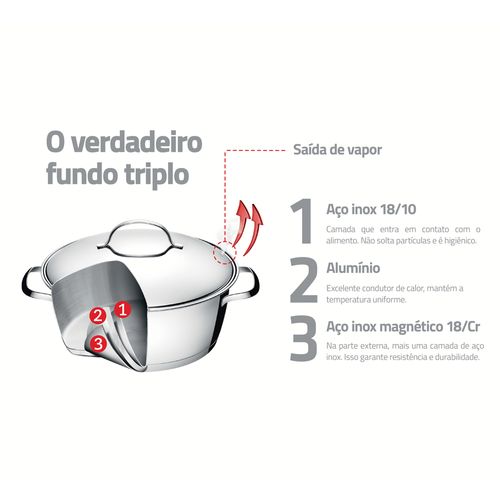 Tenha produtos práticos e diferenciados na sua cozinha. O Jogo de Panelas Tramontina Allegra em Aço Inox com Fundo Triplo 5 Peças facilita seu dia-a-dia e ainda embeleza sua cozinha. São 5 peças com design moderno que dá um toque cheio de estilo ao ambiente. Elas ainda apresentam tecnologia de fundo triplo (aço inox + alumínio + aço inox), distribuindo melhor o calor, proporcionando um cozimento mais rápido e uniforme. E o melhor, economizando mais energia! São totalmente produzidas em aço inox, material que atesta alta durabilidade e bom gosto. Acompanham tampa com saída de vapor e são ainda muito fáceis de limpar. Podendo ser lavadas diariamente na máquina de lavar louças Elas ainda impressionam pela versatilidade, podendo ser usadas em diferentes tipos de fogões.
