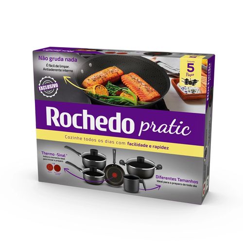 Conjunto de Panelas Antiaderente Rochedo Pratic Cinza 5 Peças: sua solução eficiente e prática para refeições diárias! Revolucione sua experiência culinária com o Conjunto de Panelas Antiaderente Rochedo Pratic Cinza 5 Peças, uma solução eficiente e prática para tornar o ato de cozinhar suas refeições diárias uma verdadeira alegria. Composto por cinco peças na elegante cor grafit e, este conjunto é projetado para atender a diversas necessidades culinárias, proporcionando versatilidade e desempenho excepcionais .As duas panelas, de 16cm e 18cm, uma caçarola de 18cm, uma frigideira de 18cm e um fervedor de 14cm oferecem o conjunto ide al para preparar uma variedade de pratos. Seu revestimento antiaderente interno e externo não apenas garante uma limpeza fácil, mas também promove a durabilidade, tornando este conjunto uma escolha duradoura para sua cozinha.Uma característica notável do C onjunto de Panelas Rochedo Pratic é a tecnologia Thermo-Sinal®, que sinaliza o momento ideal para adicionar alimentos durante o proc esso de cozimento. Isso não apenas simplifica o preparo, mas também contribui para pratos mais saborosos e perfeitamente cozidos. A inovação está presente em cada detalhe, destacando o compromisso da Rochedo em oferecer produtos que elevam a experiência culinária. As tampas de vidro inclusas no conjunto possuem saída de vapor, proporcionando um controle preciso no preparo de suas refeiç ões. Essa funcionalidade permite que você monitore o cozimento sem comprometer o sabor e a textura dos alimentos, resultando em prat os perfeitos a cada vez. O Conjunto de Panelas Antiaderente Rochedo Pratic é resistente e seguro, livre de substâncias tóxicas, gara ntindo a saúde e a segurança de sua família. A dedicação da Rochedo à excelência se reflete em cada detalhe deste conjunto, tornando -o uma escolha confiável para cozinheiros experientes e iniciantes.Cozinhe suas refeições diárias com facilidade e qualidade , aproveitando a eficiência e a praticidade oferecidas pelo Conjunto de Panelas Antiaderente Rochedo Pratic Cinza 5 Peças. Invista e m uma experiência culinária elevada, onde a tecnologia e a tradição se encontram para proporcionar momentos inesquecíveis à mesa.