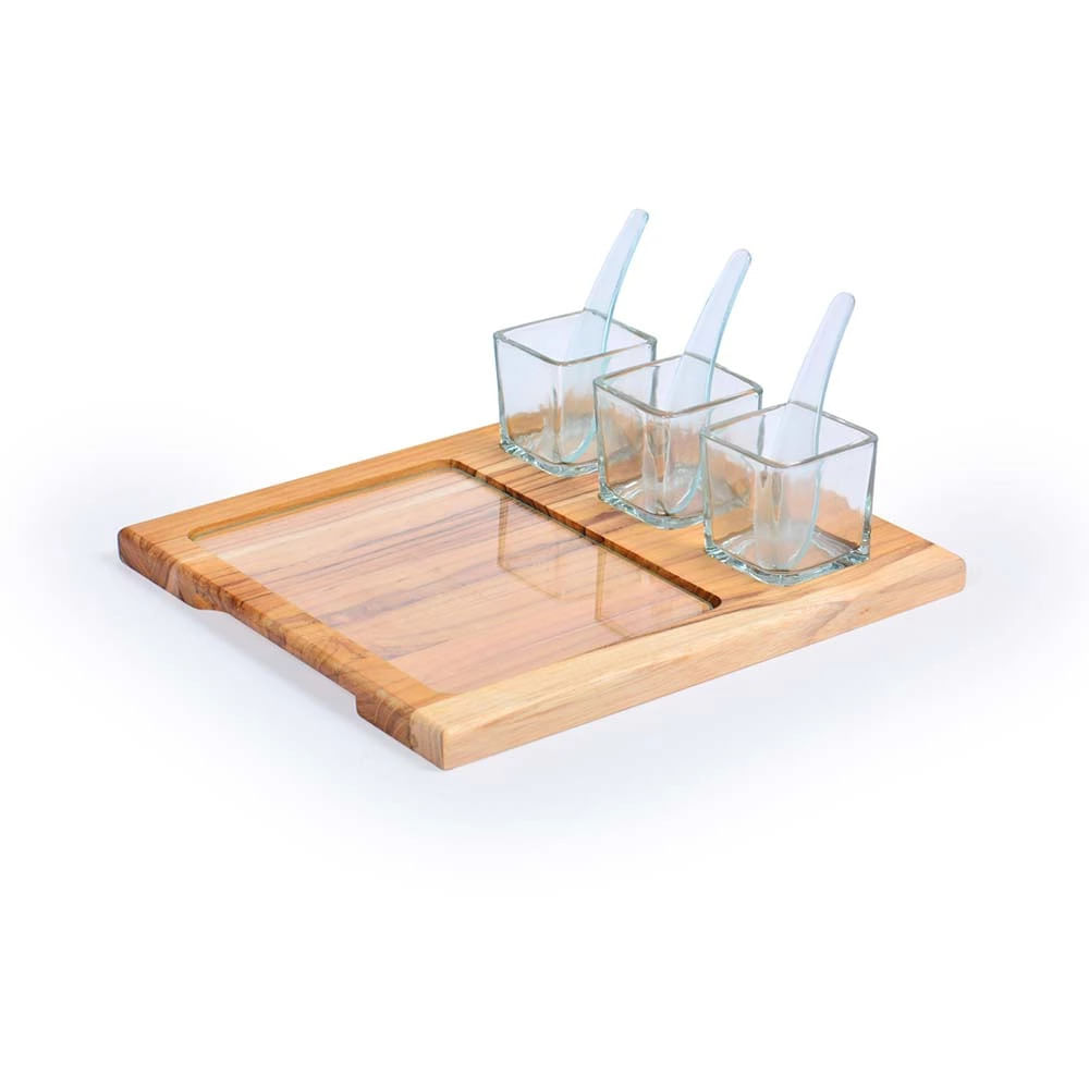 Conjunto de Petisqueira em Madeira e Vidro Decorglass Teka com 8 Peças Quadrado Marrom