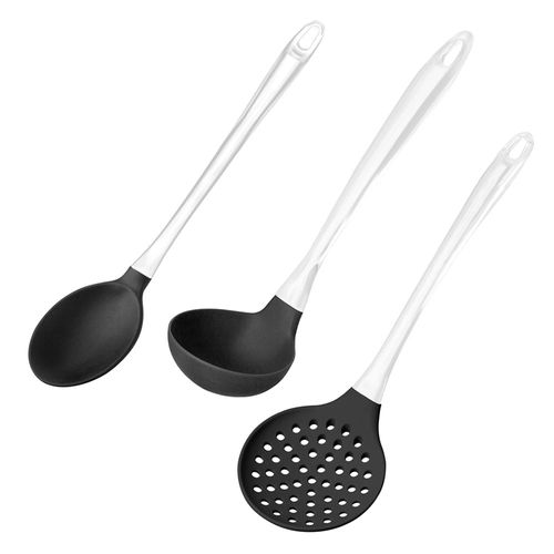 Dê um up na sua cozinha, renove ou complete seus utensílios com o Conjunto de Utensílios Multilaser. O conjunto conta com 3 peças fa bricadas em silicone de alta qualidade que suporta altas temperaturas, perfeitas para tornar as suas receitas mais práticas, além de não riscar panelas. Com a colher, você poderá servir arroz, saladas, cozidos, entre muitos outros. Com a concha, você poderá servir molhos, ensopados, entre muitos outros. E com a Escumadeira, você poderá retirar de forma rápida alimentos que estão sendo cozidos.