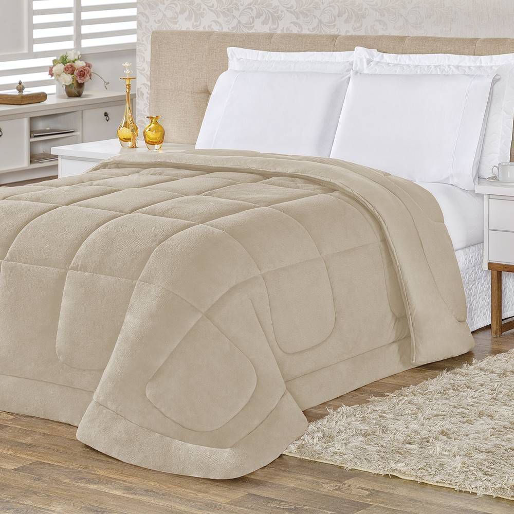 - Coberdrom 100% Algodão Malha Com Manta Microfibra Queen 01 Peça - Caqui