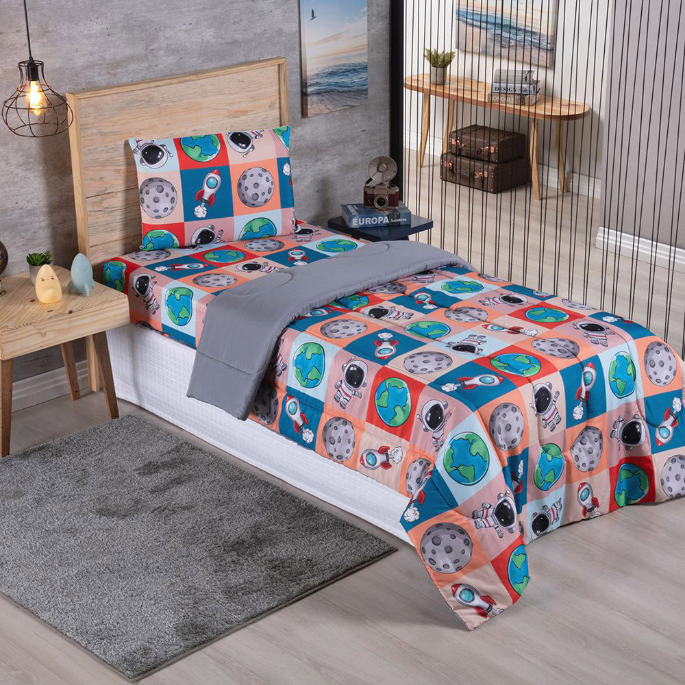 Coberdrom Edredom Solteiro Alegria Astronauta - 100% poliéster
