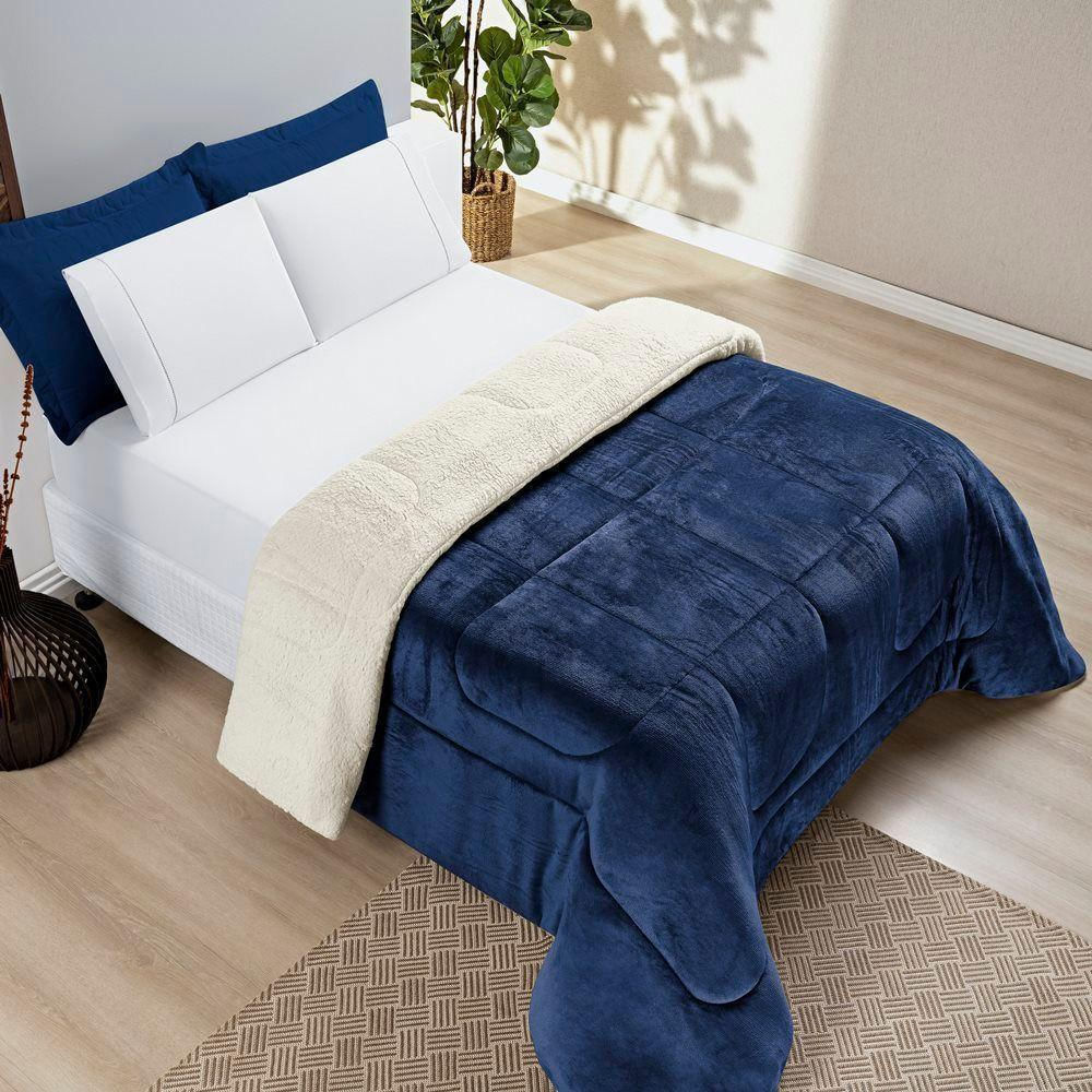 - Coberdrom Sherpa E Flannel Everest Queen Manta Alta 150g 01 Peça - Marinho