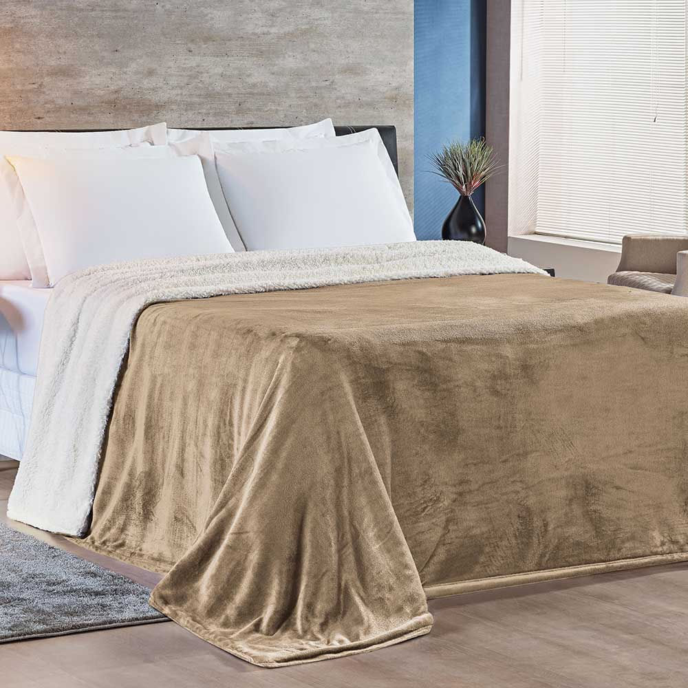 - Cobertor Magnific Casal Queen Sherpa Com Manta Microfibra Toque Lã Carneiro 01 Peça - Cáqui Bege