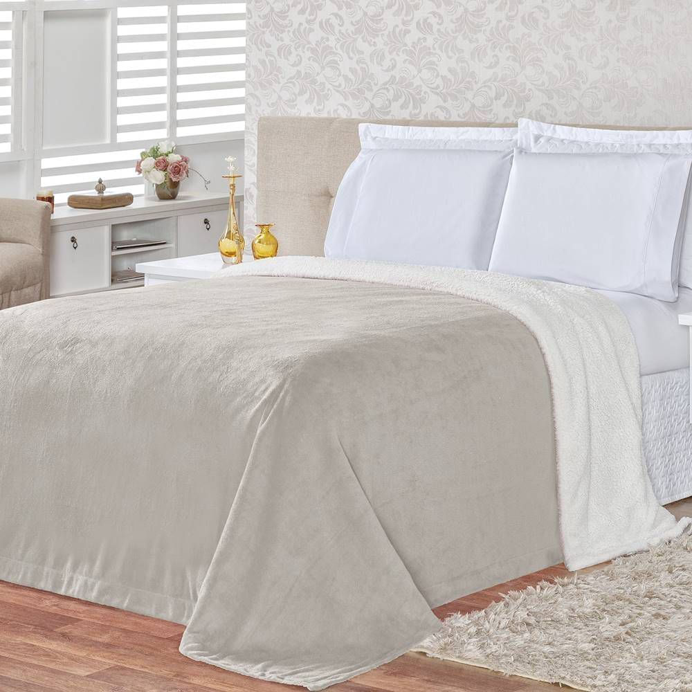 - Cobertor Pele De Carneiro Sherpa Alaska Queen 01 Peça - Cinza