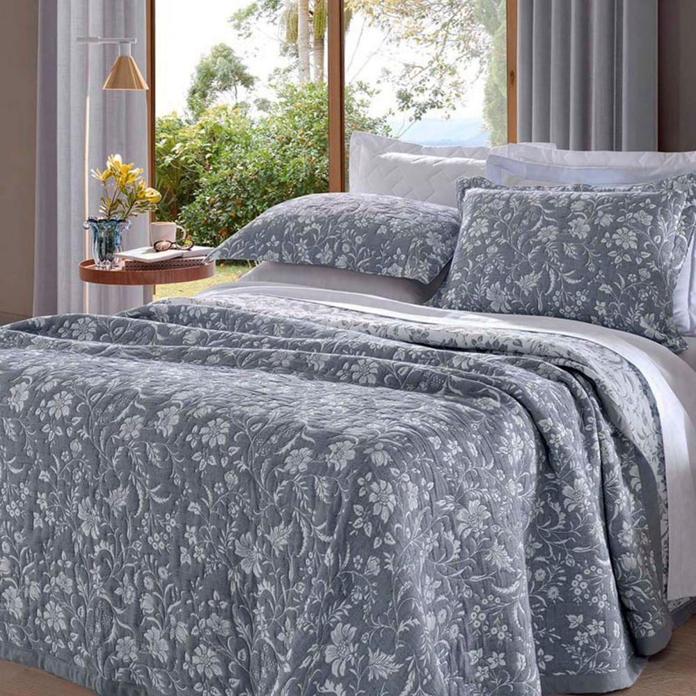Cobre Leito Buettner King Jacquard Dupla Face Cenário Estampado Veras 3 Peças Cinza