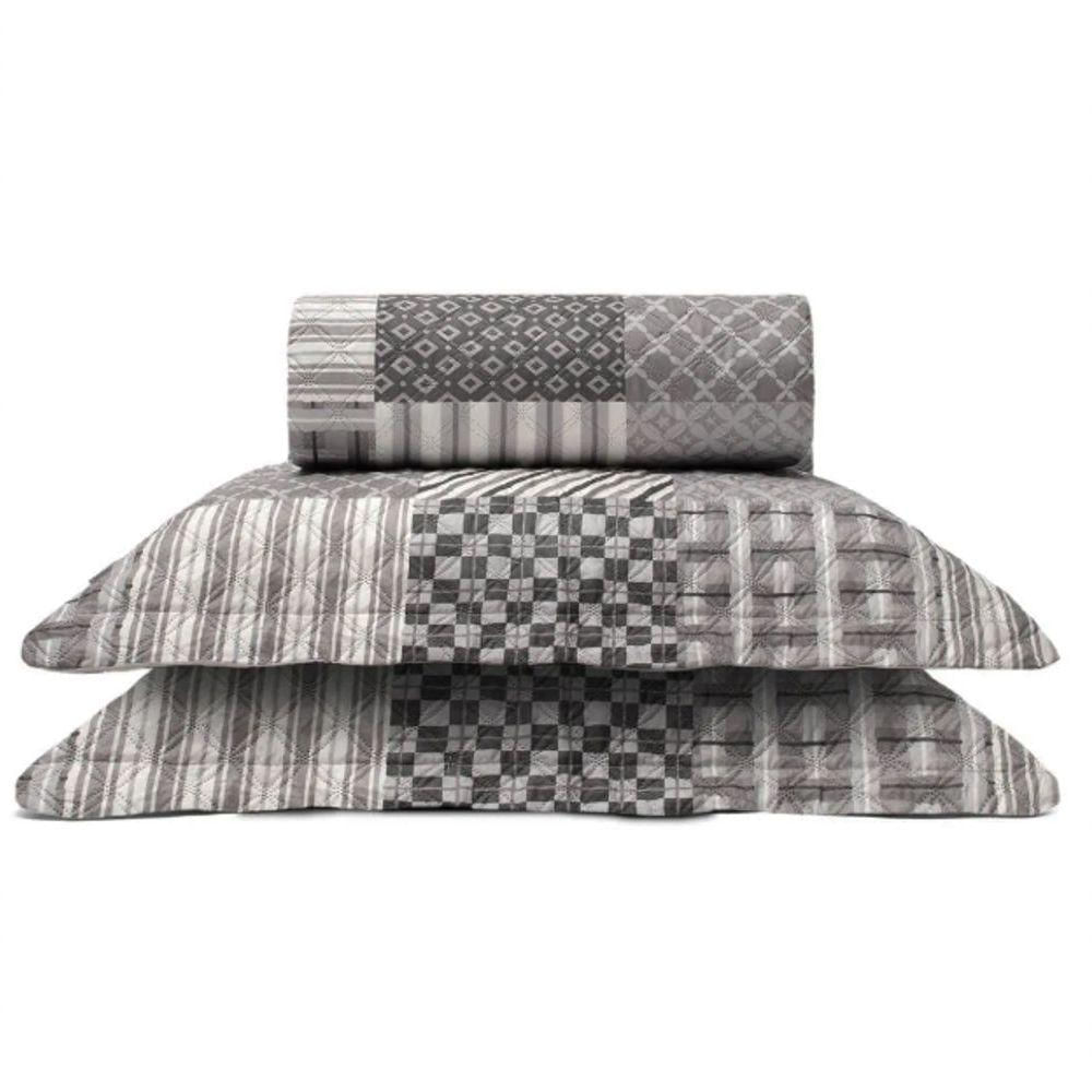 Cobre Leito Buettner King Microfibra Renove Estampado Austria 3 Peças Cinza