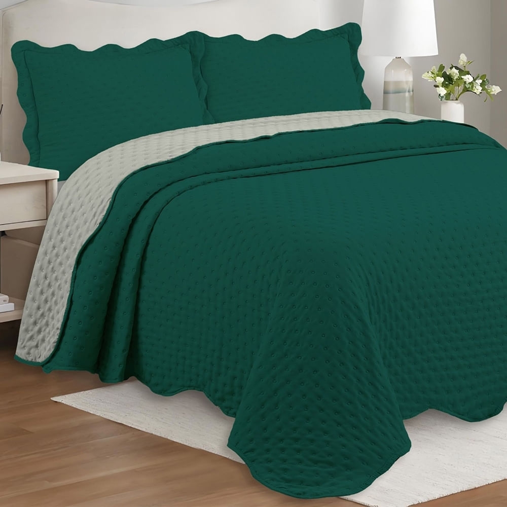 Cobre Leito Colcha By-Collor Solteiro 2 Peças Esmeralda-Cinza - 100% Poliéster