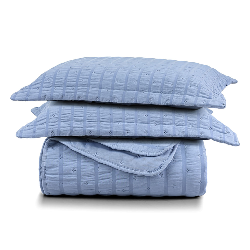 Cobre Leito King Plissê Seersucker e Matelado Ultrassônico 03 Peças 100% Poliéster - Azul Mineral