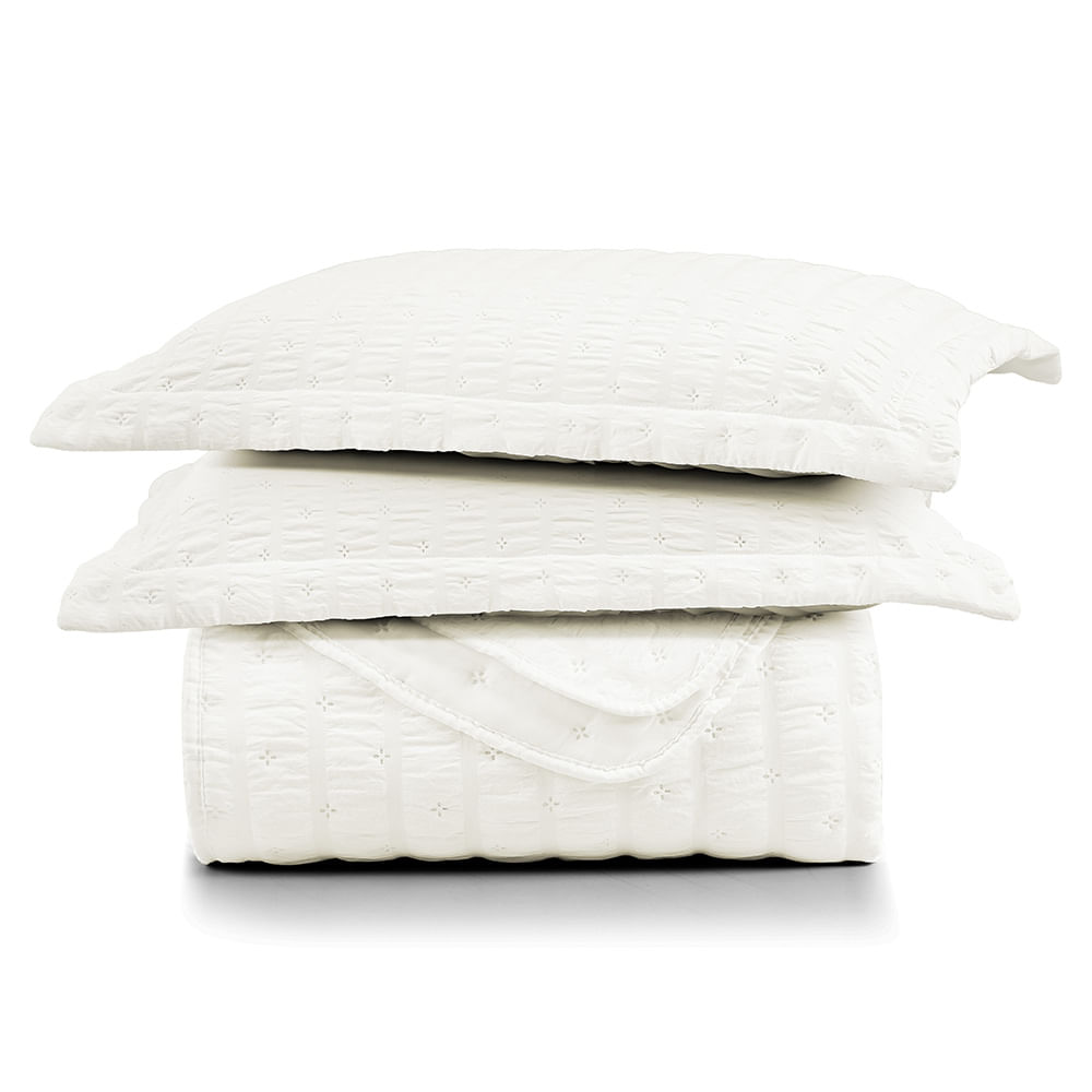 Cobre Leito King Plissê Seersucker e Matelado Ultrassônico 03 Peças 100% Poliéster - Marfim