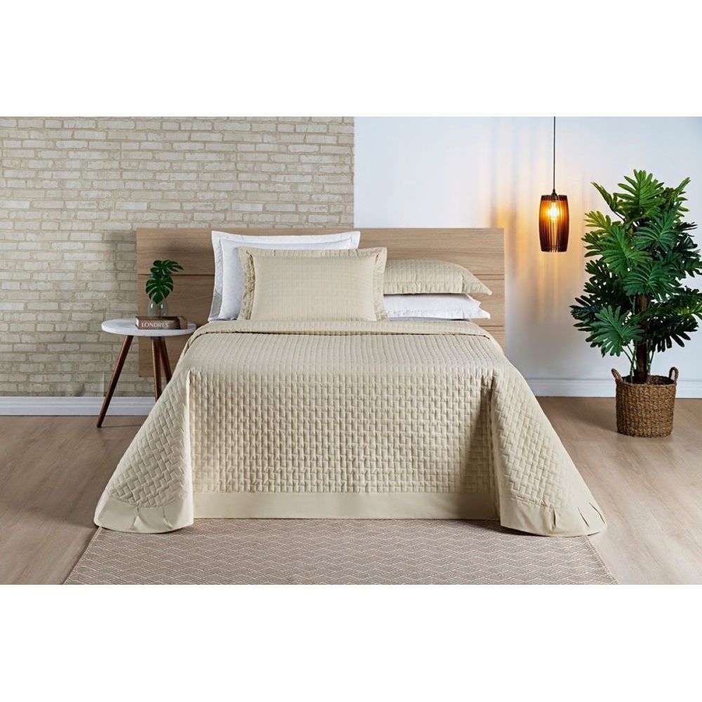 O Cobre Leito Madri é confeccionado com tecido percal 200 fios 100% Algodão e possui detalhes no barrado, acompanha porta travesseiros.